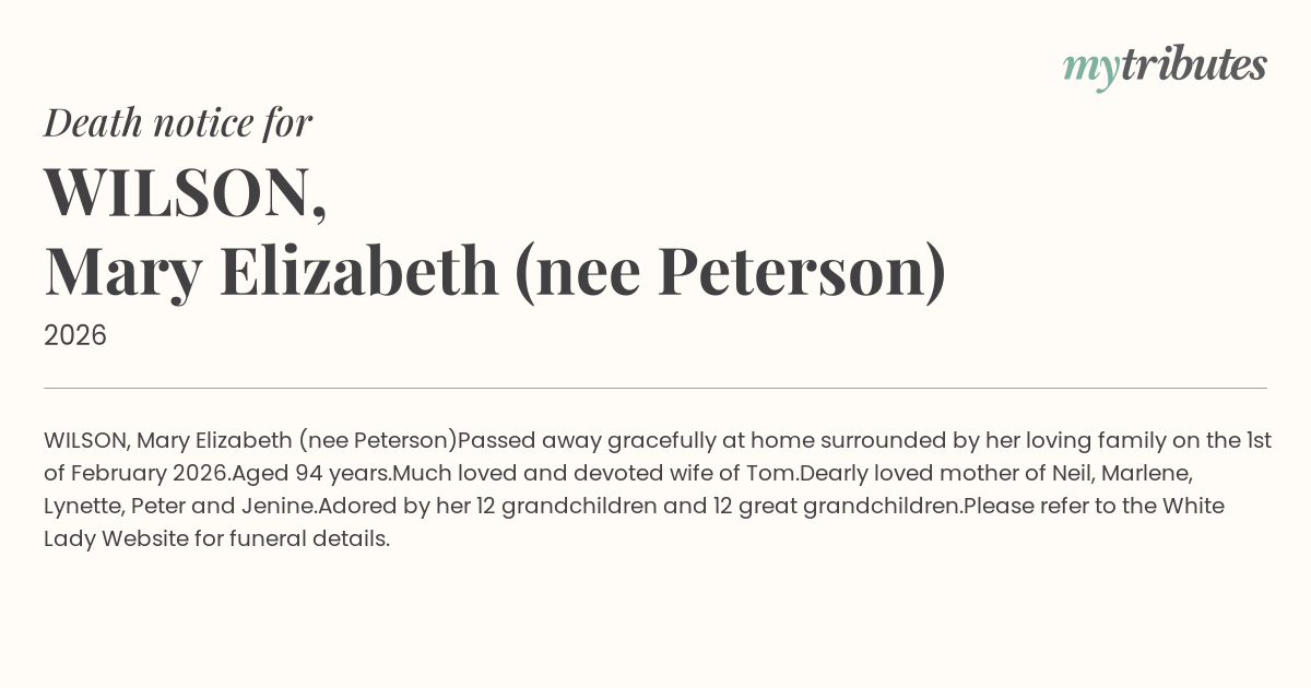 Passed away gracefully at home surrounded by her loving family on the 1st of February 2026.