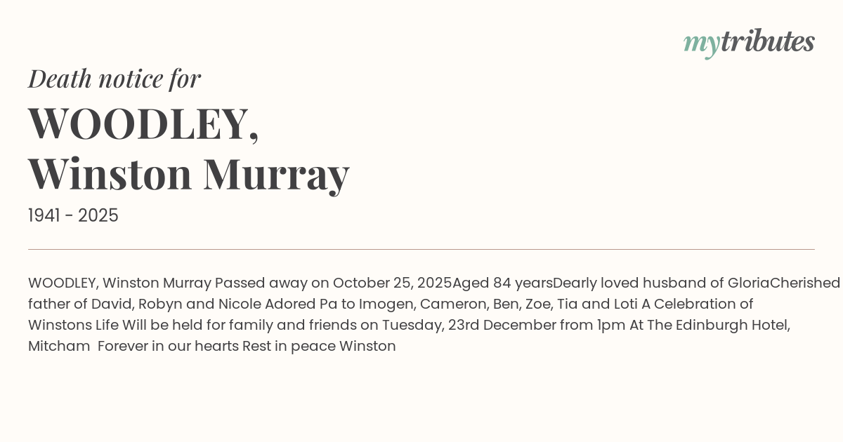 Will be held for family and friends on Tuesday, 23rd December from 1pm