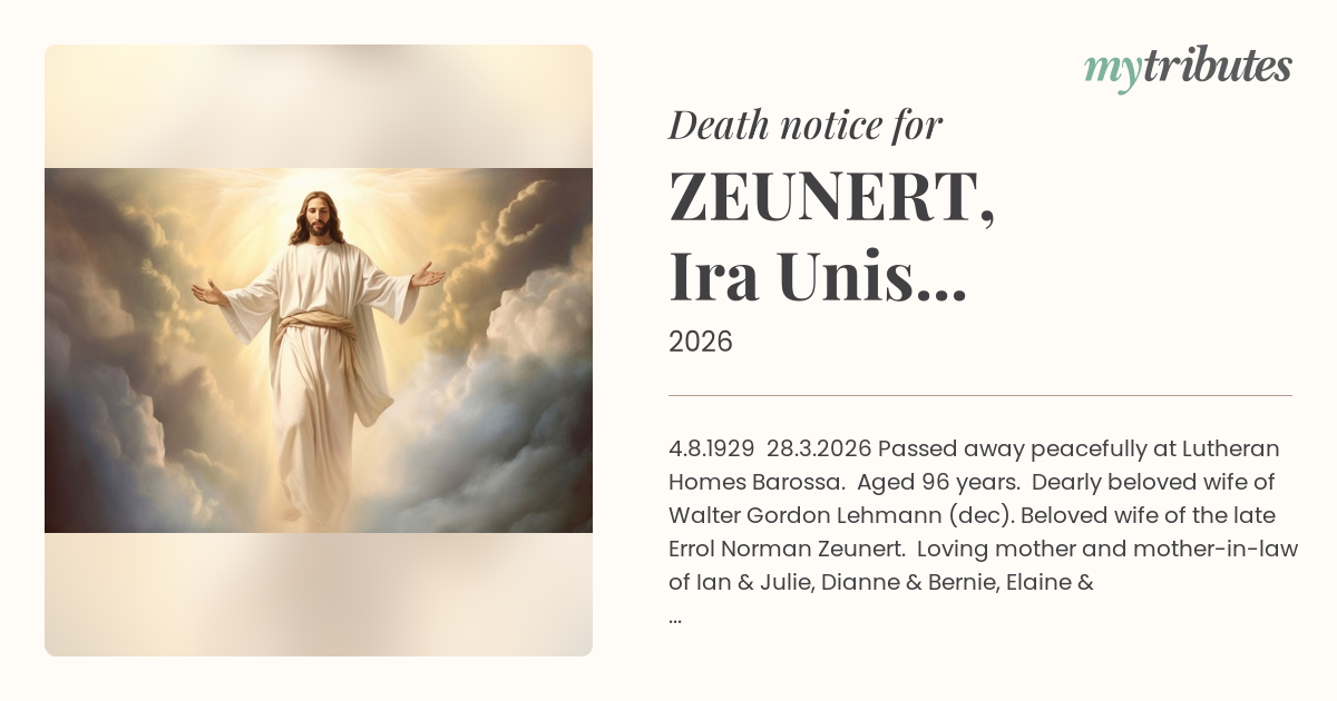 Beloved wife of the late Errol Norman Zeunert.