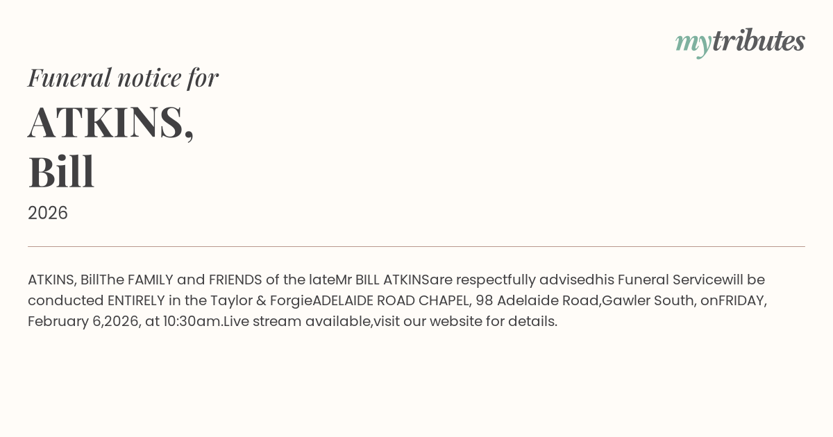 Funeral by : Taylor & Forgie: Cowan Street Gawler Funerals