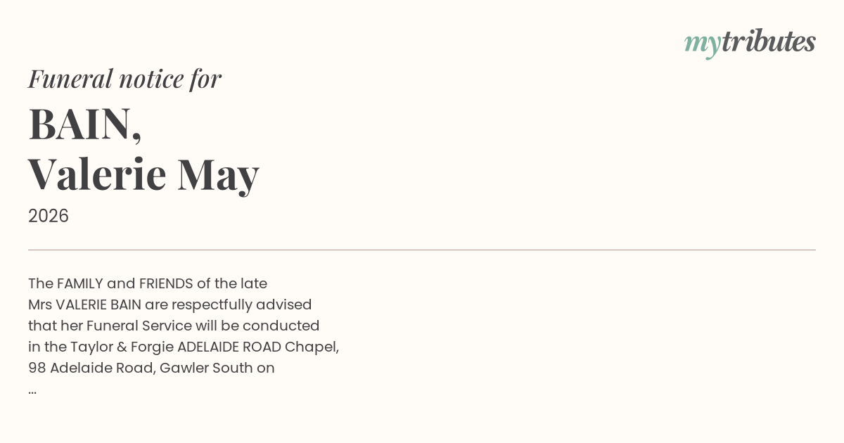 Mrs VALERIE BAIN are respectfully advised
