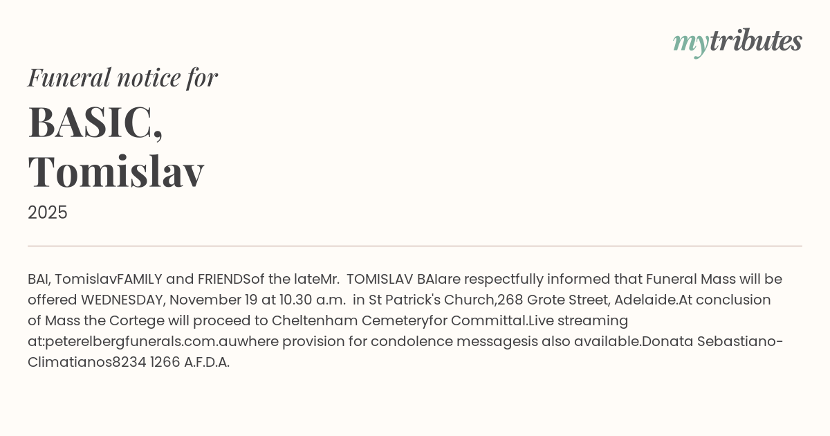 are respectfully informed that Funeral Mass