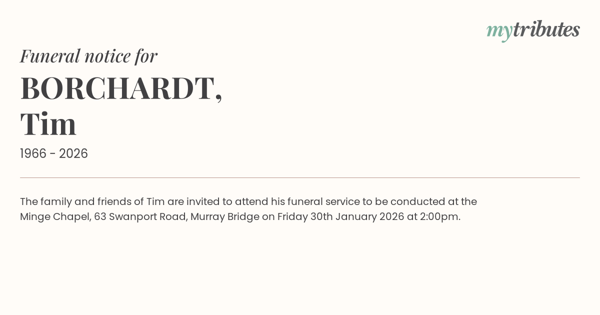 The family and friends of Tim are invited to attend his funeral service to be conducted at the