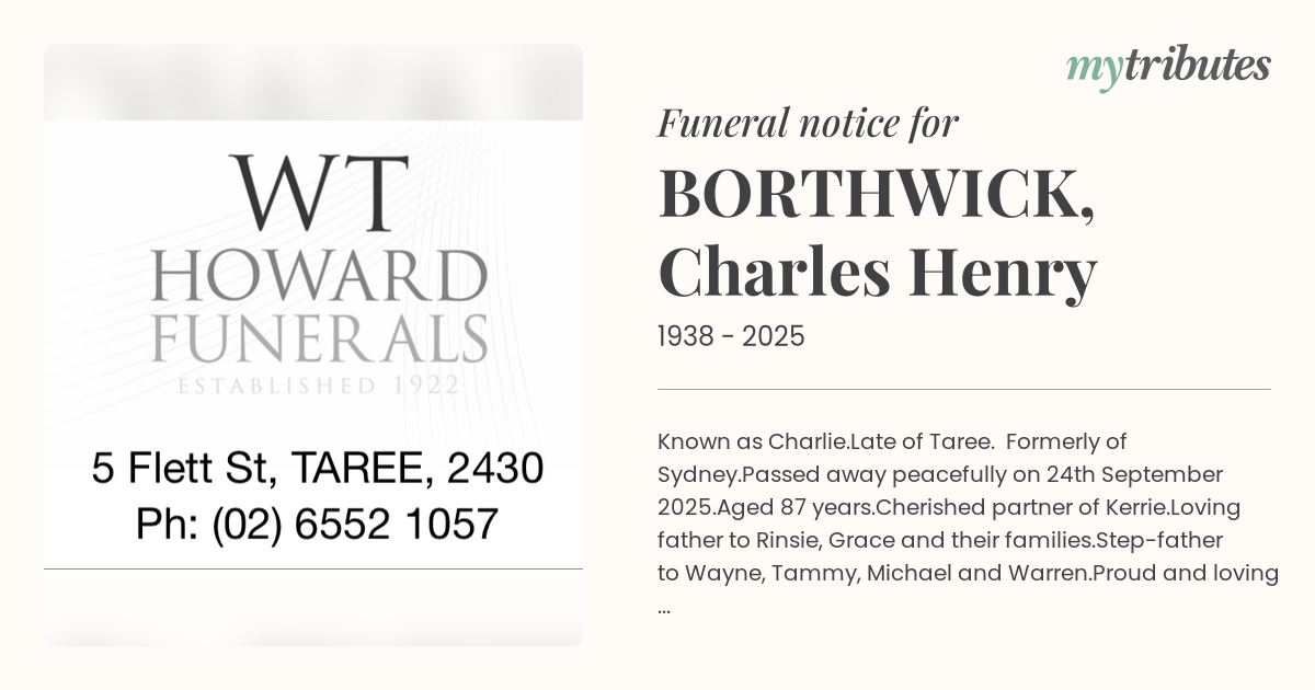 Relatives and friends are respectfully invited to attend Charlie’s Graveside Funeral Service to be held at Palmdale Lawn Cemetery & Memorial Park