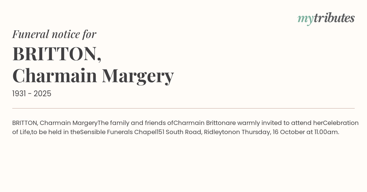 BRITTON, Charmain Margery