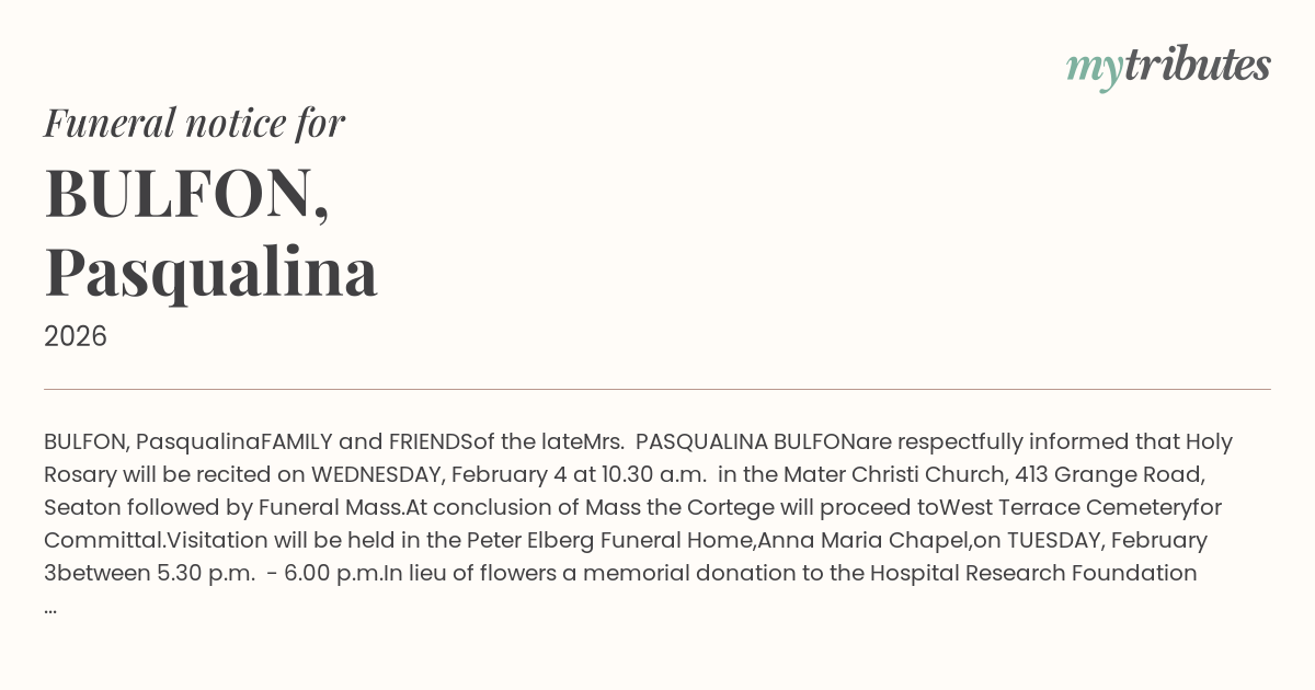 will be recited on WEDNESDAY, February 4 at 10.30 a.m.
