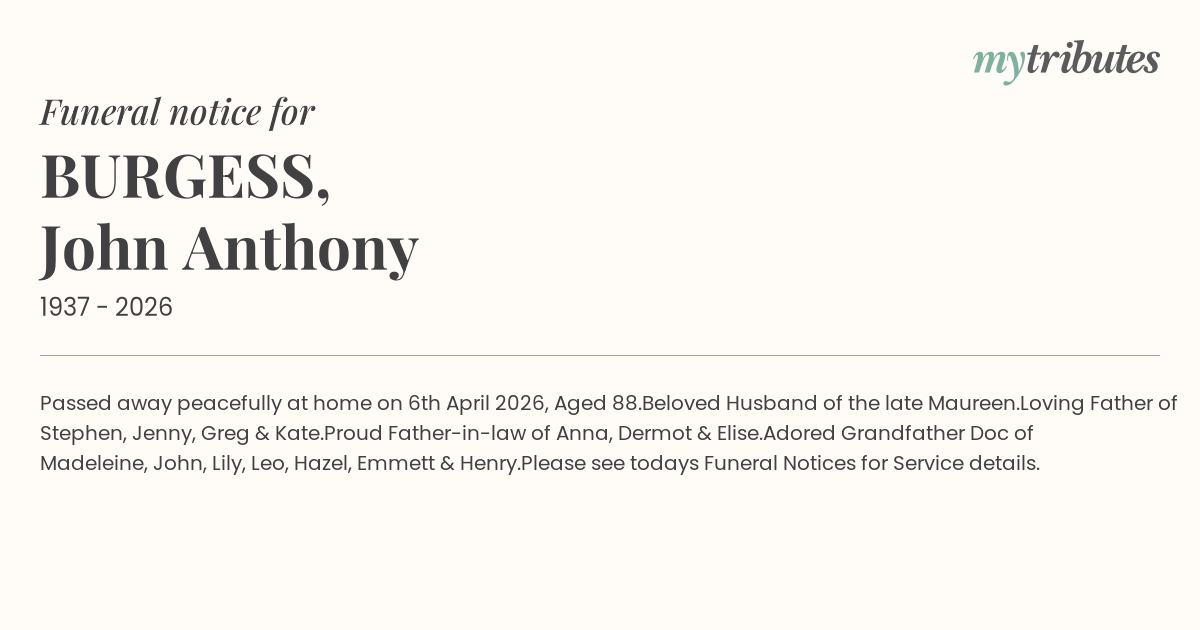 Passed away peacefully at home on 6th April 2026, Aged 88.