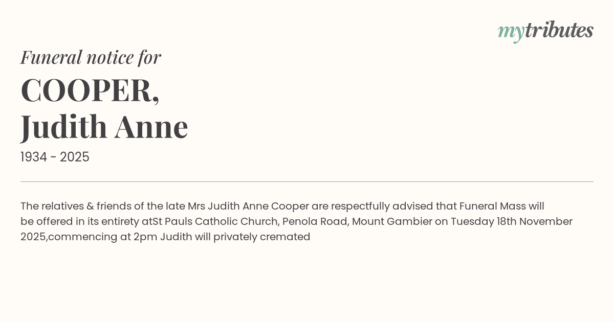 Mrs Judith Anne Cooper