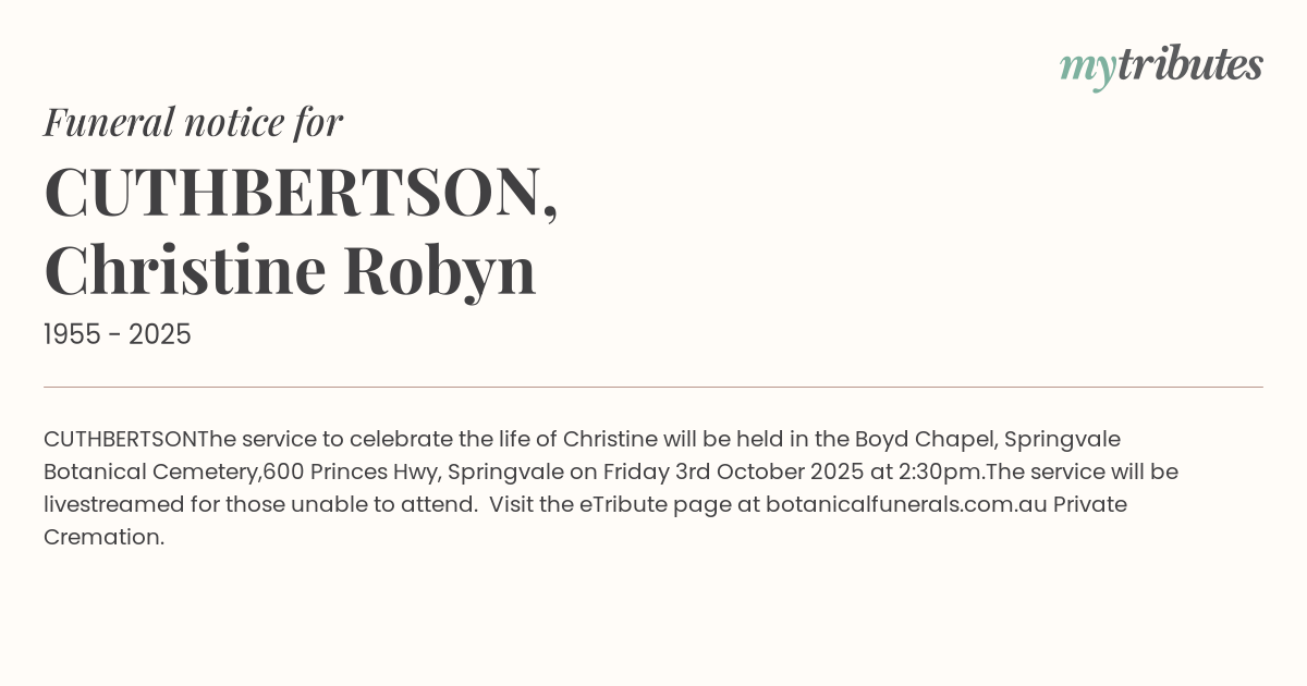 The service will be livestreamed for those unable to attend. Visit the eTribute page at botanicalfunerals.com.au