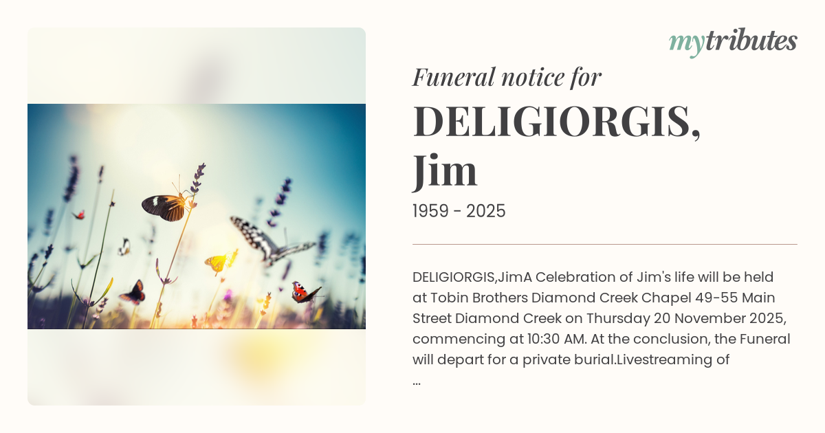 A Celebration of Jim's life will be held at Tobin Brothers Diamond Creek Chapel 49-55 Main Street Diamond Creek on Thursday 20 November 2025, commencing at 10:30 AM. At the conclusion, the Funeral will depart for a private burial.
