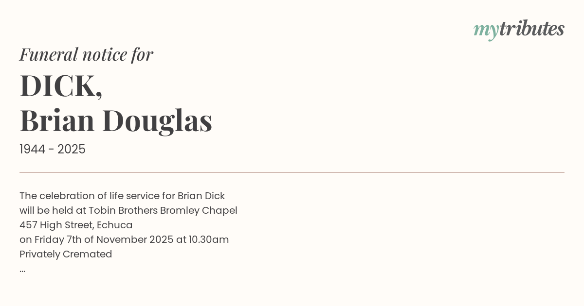 link via Tobin Brothers Funerals tribute page for Brian