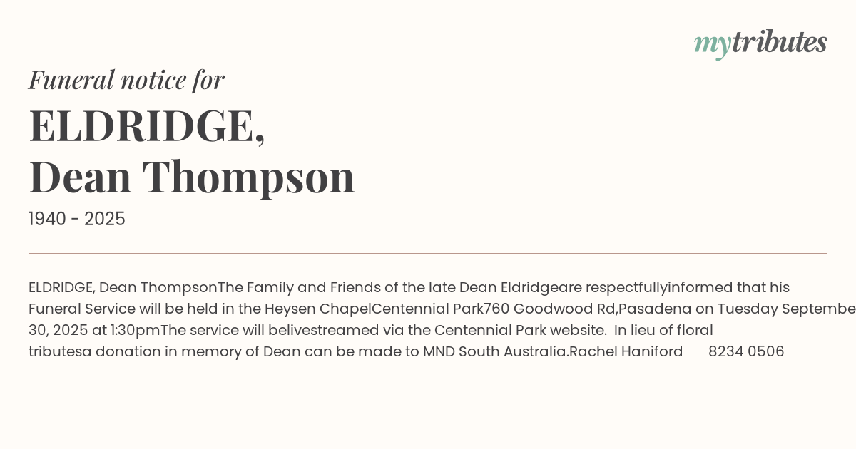 ELDRIDGE, Dean Thompson