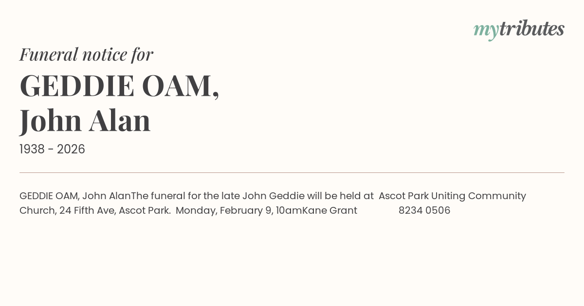 GEDDIE OAM, John Alan