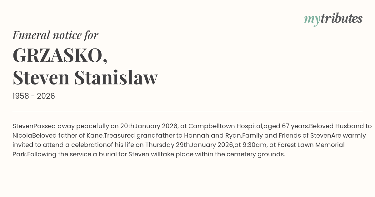 of his life on Thursday 29th January 2026,