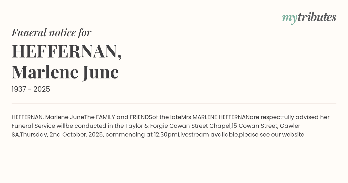 Funeral by : Taylor & Forgie: Cowan Street Gawler Funerals