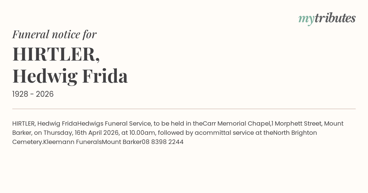 Funeral by : Kleemann Funerals Mount Barker