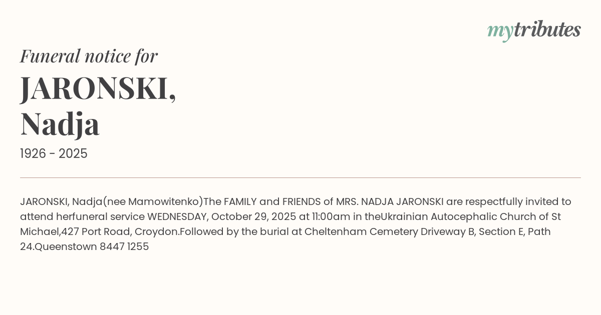 The FAMILY and FRIENDS of MRS. NADJA JARONSKI are