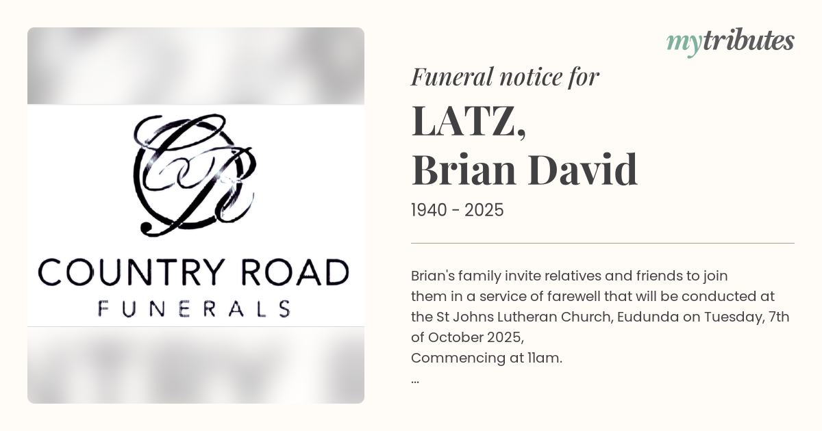 Brian's family invite relatives and friends to join them in a service of farewell that will be conducted at the St John’s Lutheran Church, Eudunda on Tuesday, 7th of October 2025,