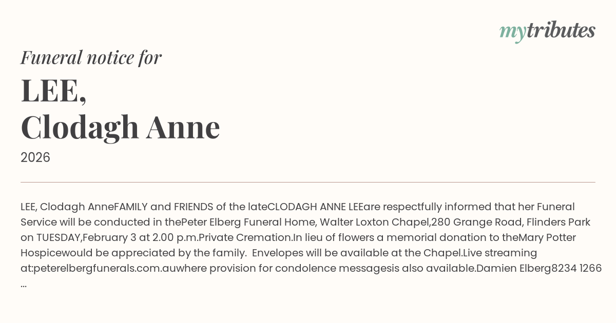 Website: http://www.peterelbergfunerals.com.au