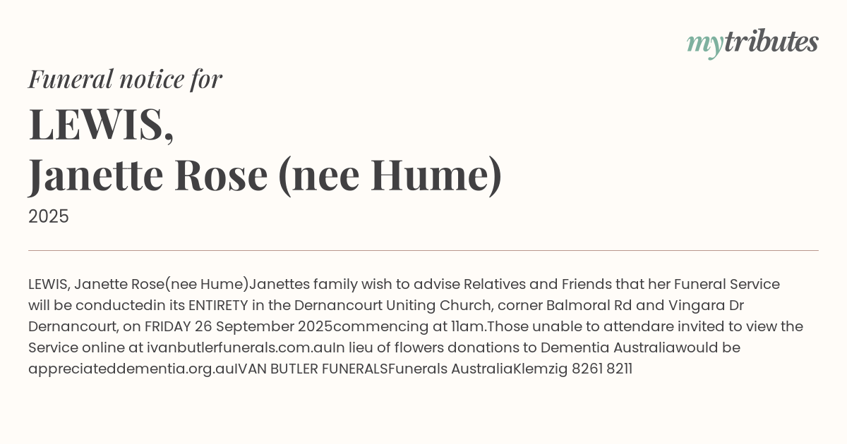 in its ENTIRETY in the Dernancourt Uniting Church,