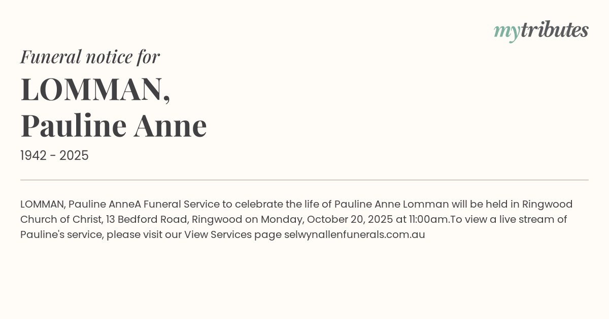 To view a live stream of Pauline's service, please visit our View Services page selwynallenfunerals.com.au