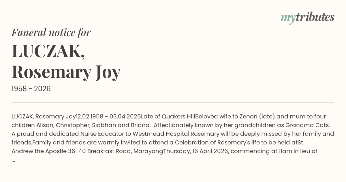 LUCZAK, Rosemary Joy