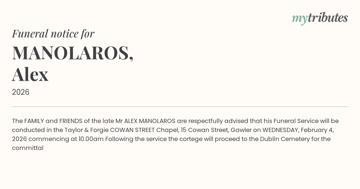 Mr ALEX MANOLAROS are respectfully advised