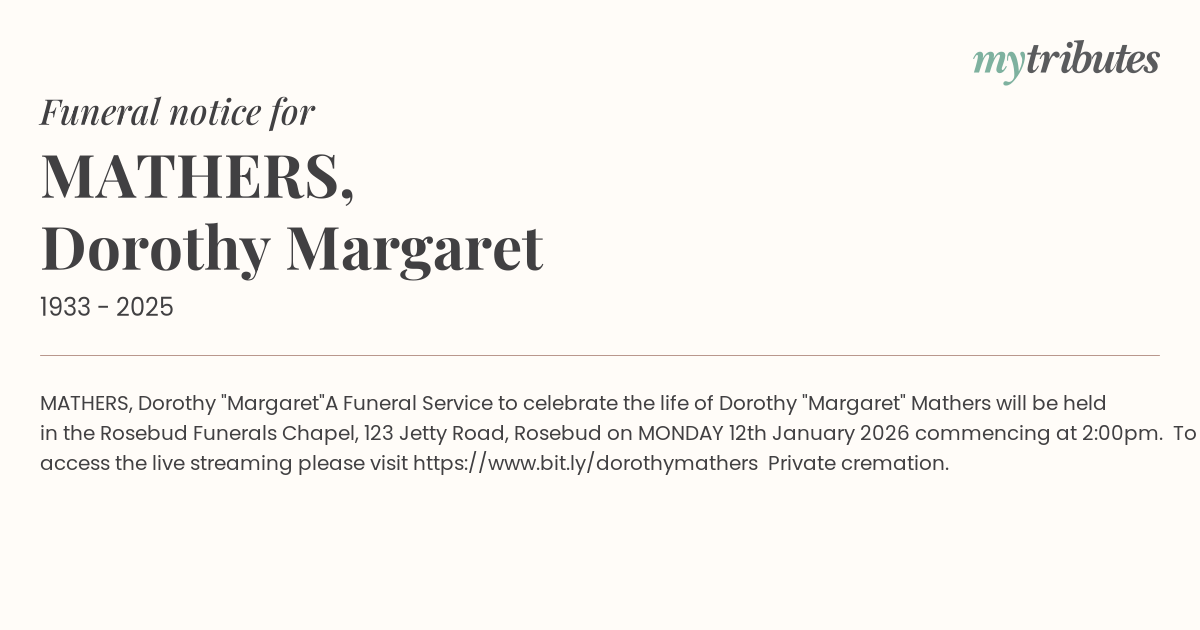 To access the live streaming please visit https://www.bit.ly/dorothymathers