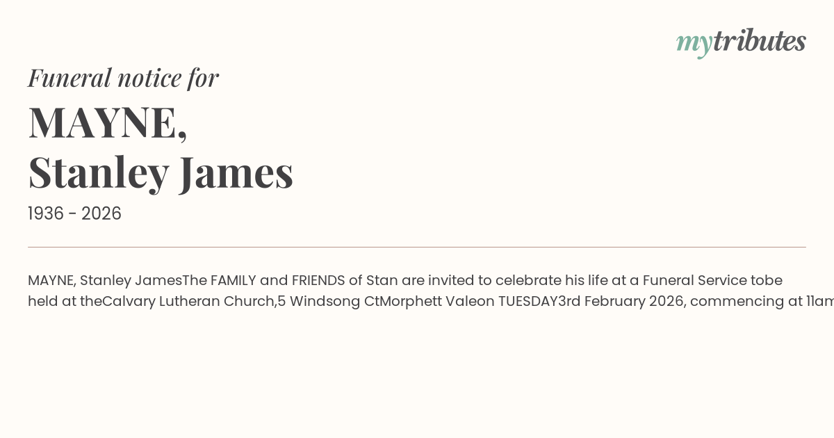 The FAMILY and FRIENDS of Stan are invited to celebrate his life at a Funeral Service to