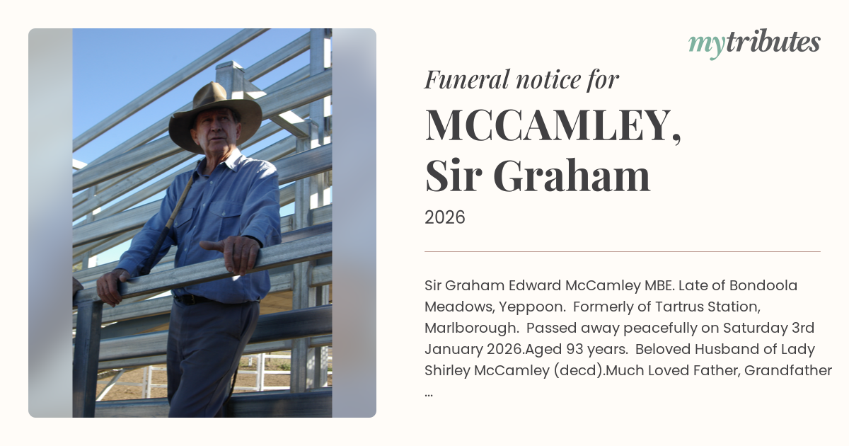 Beloved Husband of Lady Shirley McCamley (dec’d).