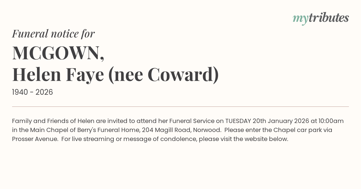 are invited to attend her Funeral Service