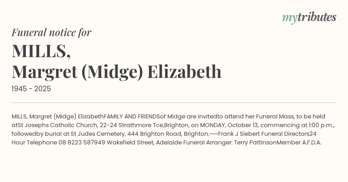 by burial at St Judes Cemetery, 444 Brighton Road, Brighton.