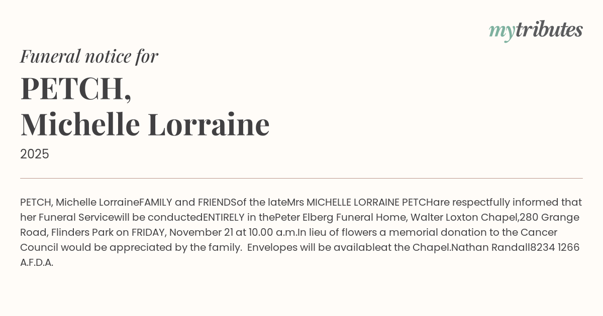 PETCH, Michelle Lorraine