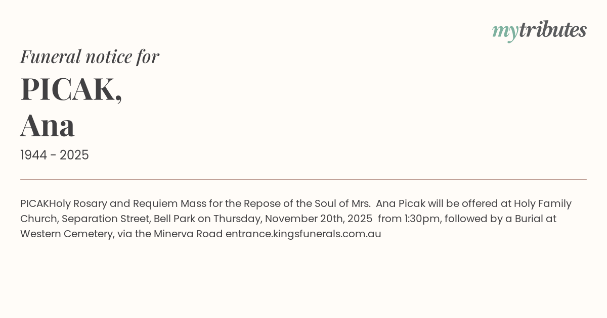 Bell Park on Thursday, November 20th, 2025 from 1:30pm, followed by a Burial at