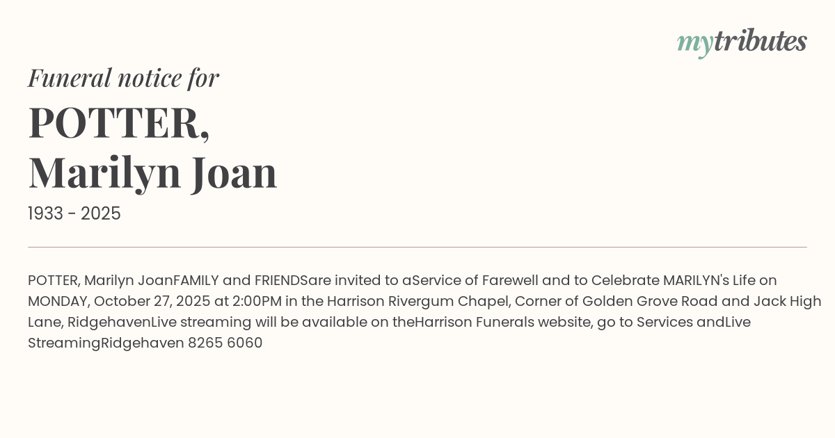 POTTER, Marilyn Joan