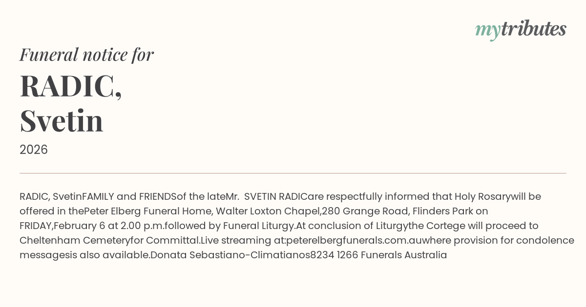 Website: http://www.peterelbergfunerals.com.au