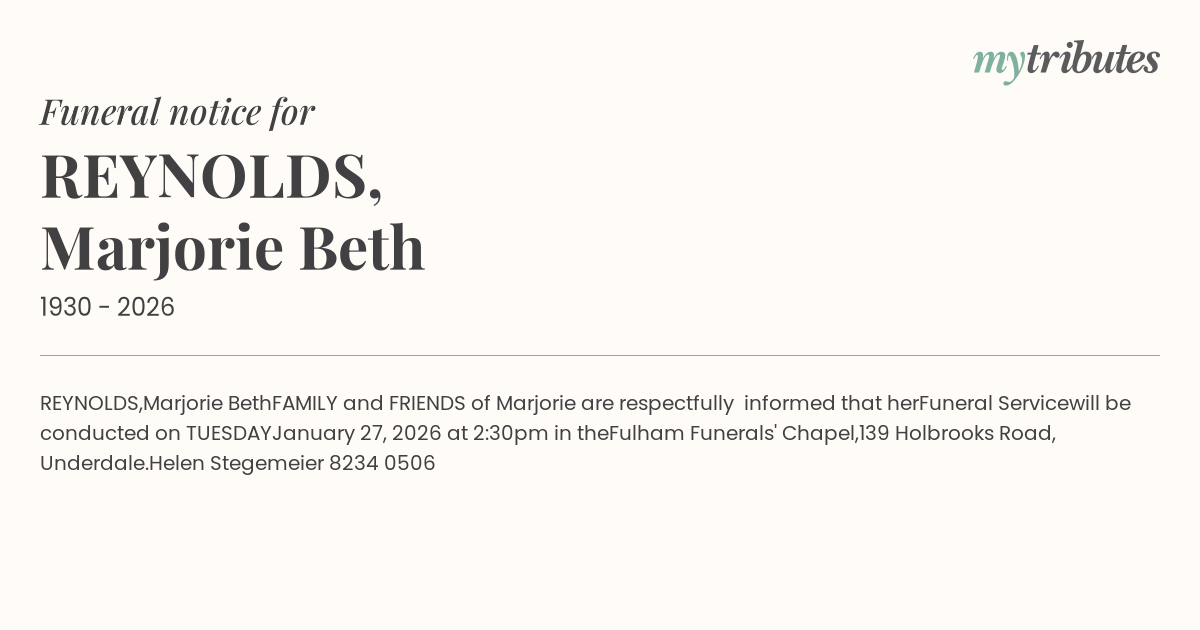 Funeral by : Fulham Funerals SA Pty Ltd