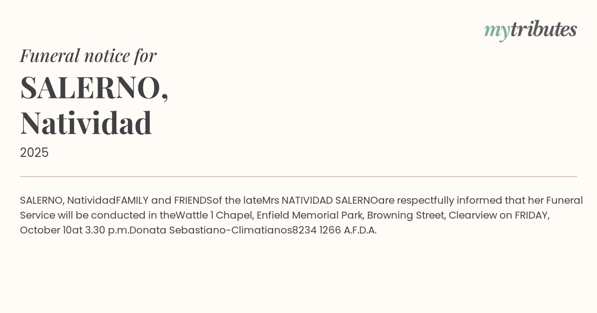 Mrs NATIVIDAD SALERNO