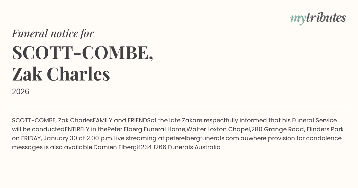 SCOTT-COMBE, Zak Charles