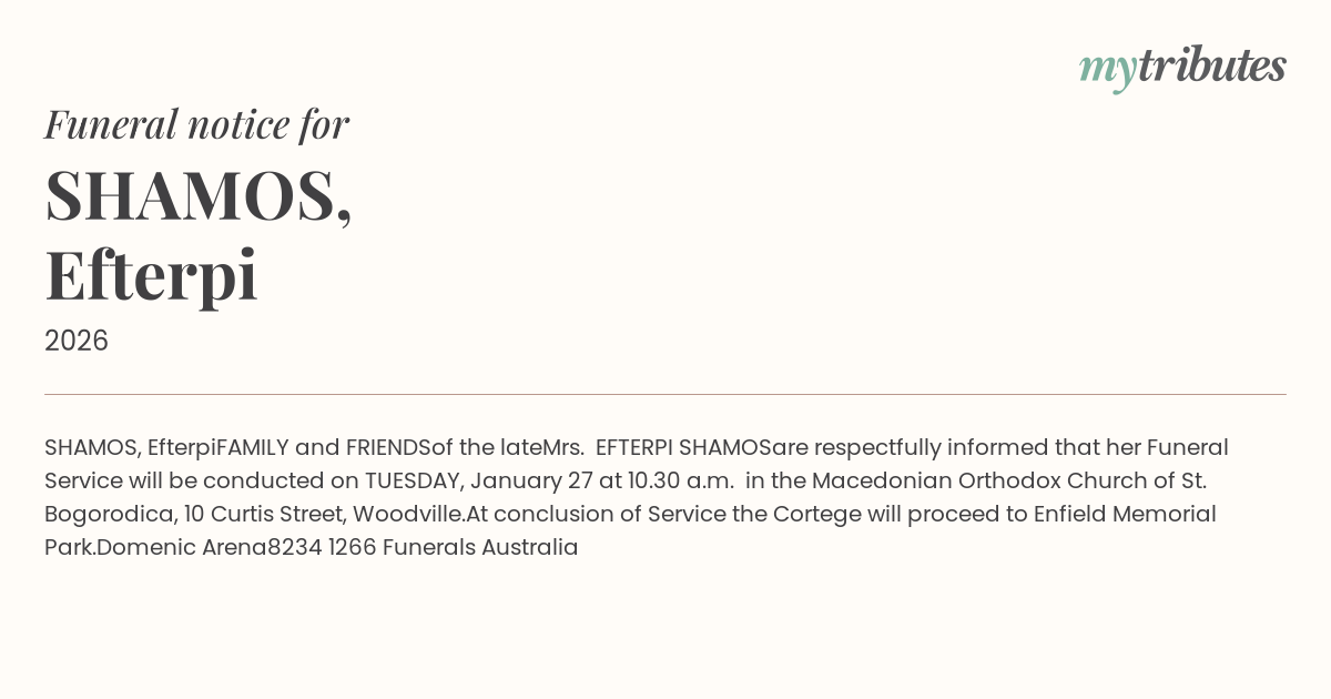 are respectfully informed that her Funeral Service