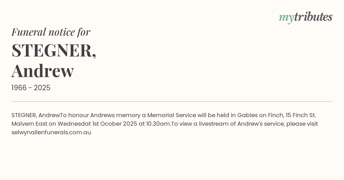 To view a livestream of Andrew's service, please visit selwynallenfunerals.com.au