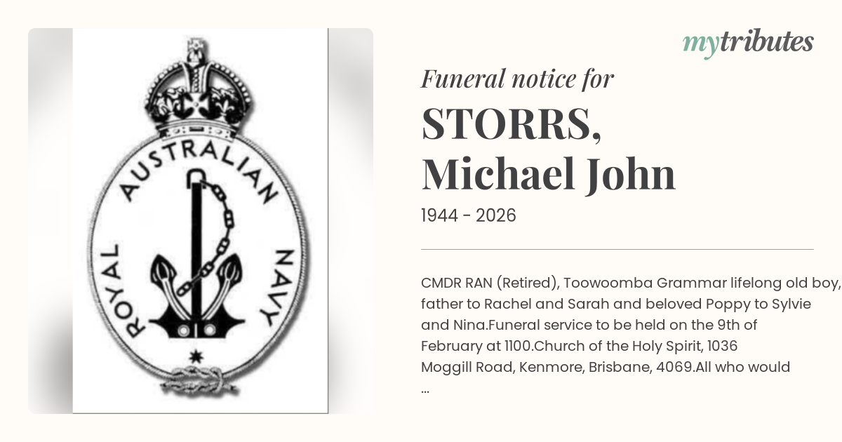 CMDR RAN (Retired), Toowoomba Grammar lifelong old boy, father to Rachel and Sarah and beloved Poppy to Sylvie and Nina.