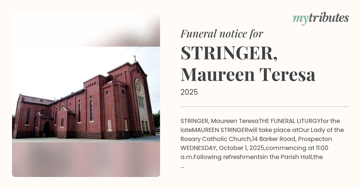 STRINGER, Maureen Teresa