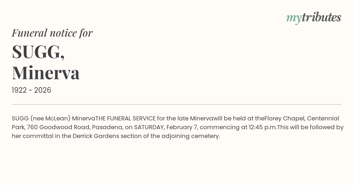 SUGG (nee McLean) Minerva
