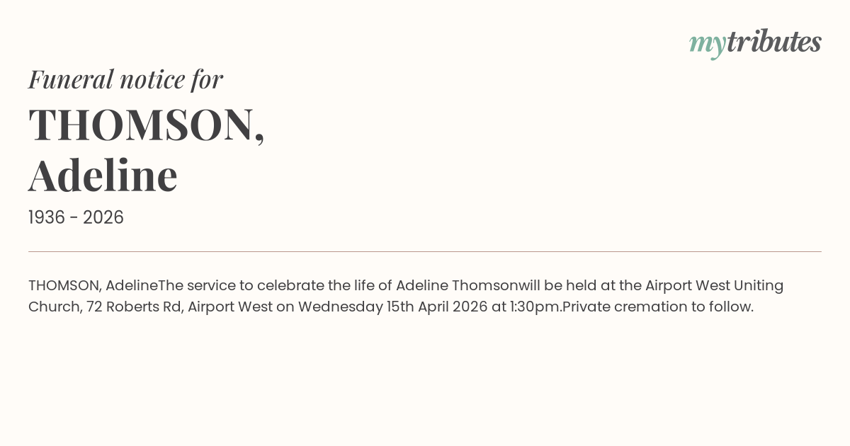will be held at the Airport West Uniting Church, 72 Roberts Rd, Airport West on Wednesday 15th April 2026 at 1:30pm.