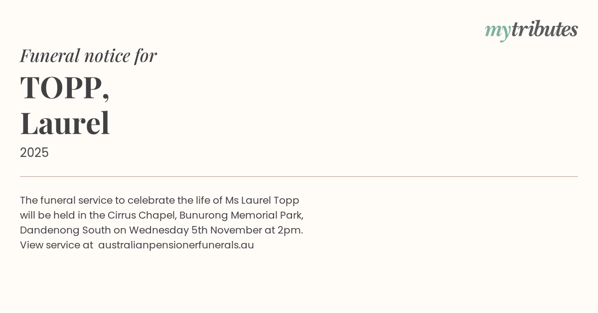 The funeral service to celebrate the life of Ms Laurel Topp