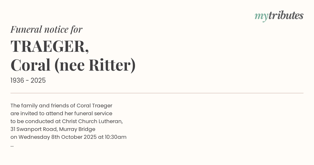 The family and friends of Coral Traeger