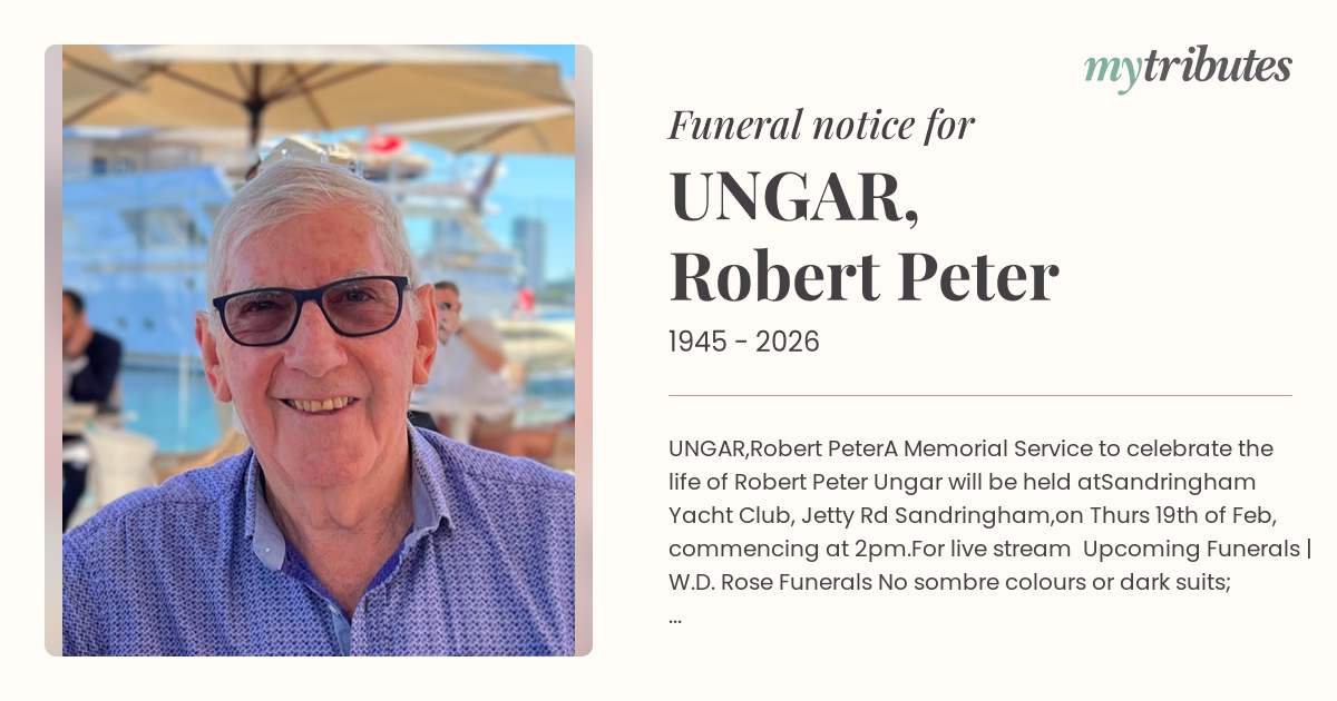 A Memorial Service to celebrate the life of Robert Peter Ungar will be held at