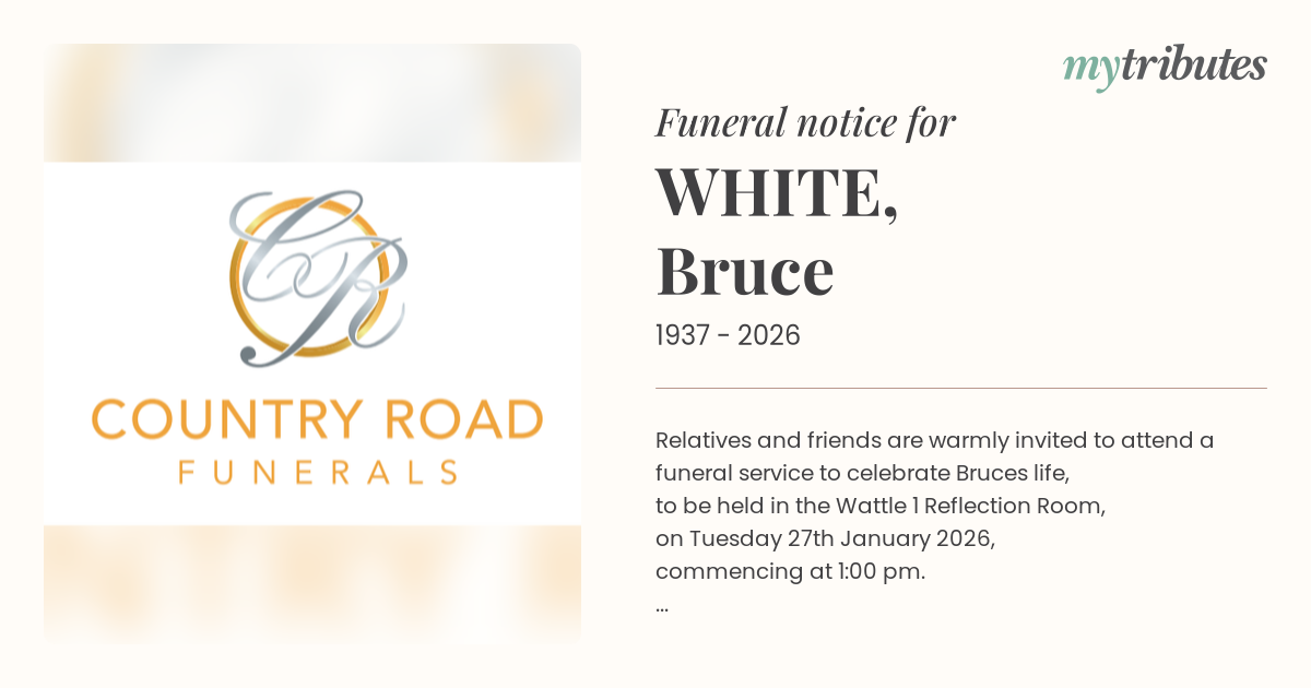 Relatives and friends are warmly invited to attend a funeral service to celebrate Bruce’s life,