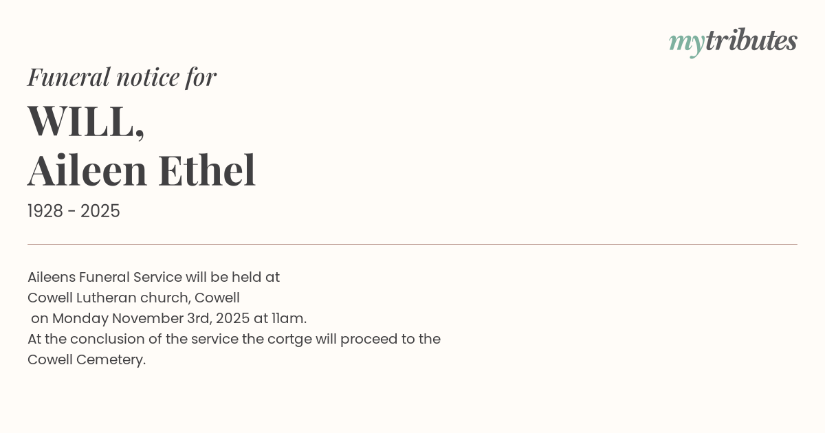 Aileen’s Funeral Service will be held at
